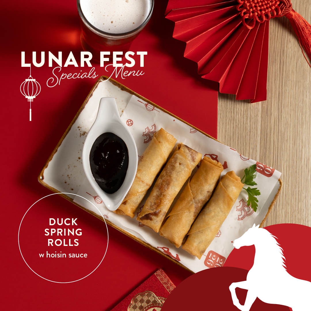 Duck Spring Rolls: Lightly crisped and golden, representing wealth and abundance. A Lunar New Year essential, perfect alongside a chilled drink.